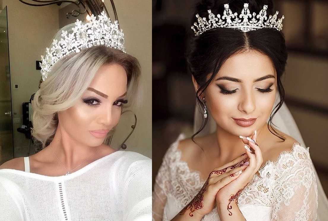 Прически с тиарой на длинных волосах или коротких локонах – все они смотрятся одинаково великолепно. Поэтому диадема является идеальным дополнением облика невест.