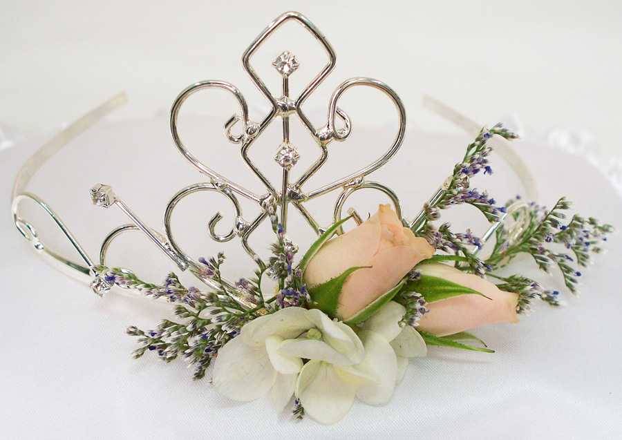 Полевые и садовые цветы, бутоны, ягоды и даже живые цветы используются в диадемах из цветов: