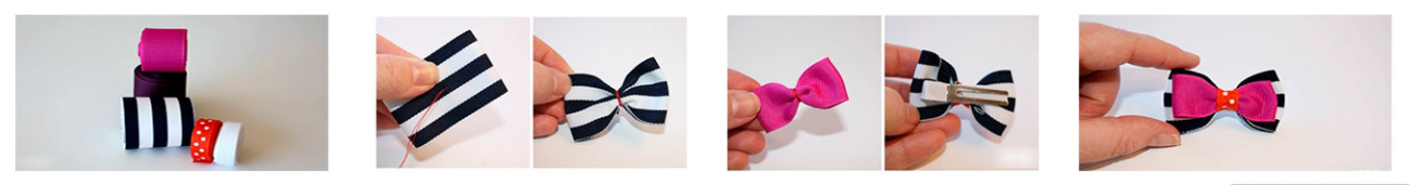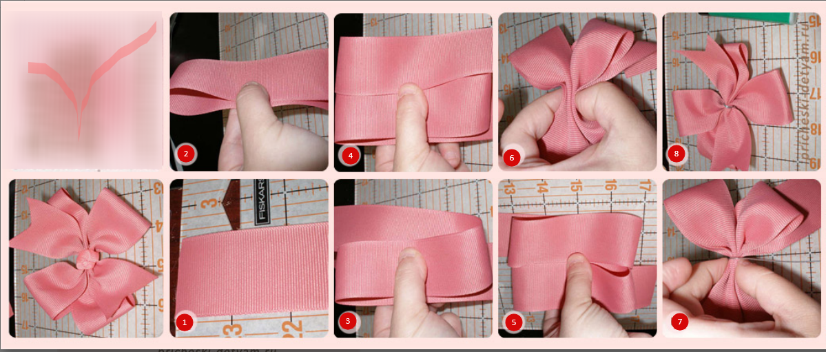 Для украшения резинок подойдут небольшие бантики из узеньких ленточек. Предлагаем рассмотреть два способа изготовления таких бантов.