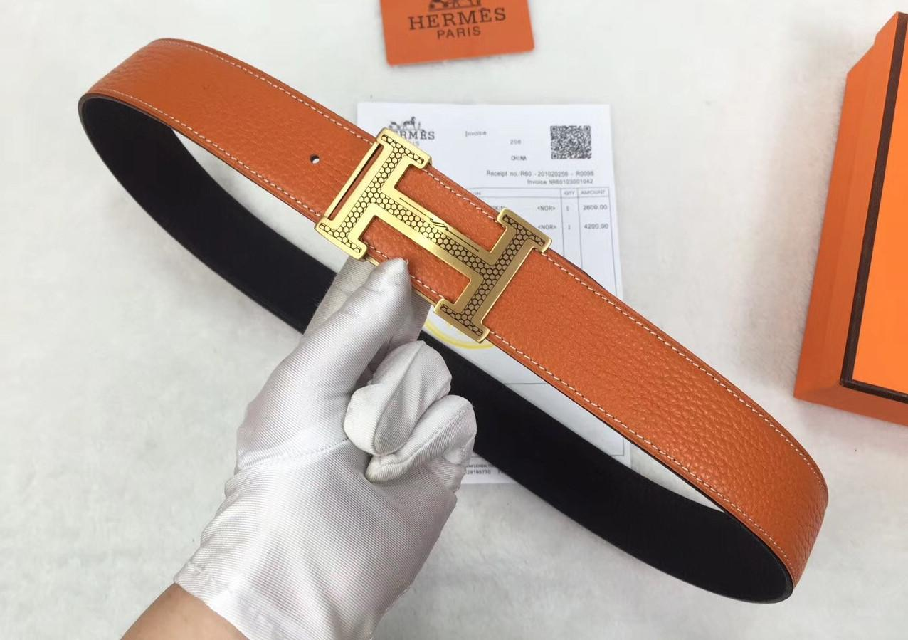На перекладине буквы «H» у настоящего ремня вы всегда найдете штамп с названием бренда. Маркировка может быть нанесена в обеих вариантах Hermès или Hermes, но если она обведена прямоугольником – у вас в руках точно подделка. У новых изделий в маркировке могут встречаться и дополнительные знаки, кроме латинских букв и цифр, например черточки.