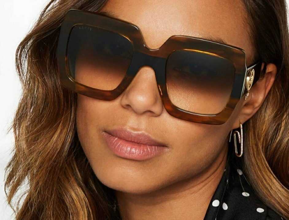 - Gucci. Элегантность и надежность – основные качественные характеристики очков от легендарного бренда «Гуччи». Линзы производитель делает из поликарбоната, поэтому аксессуар легкий и долговечный. Обязательно на каждом изделии ставится логотип бренда (на оправе).