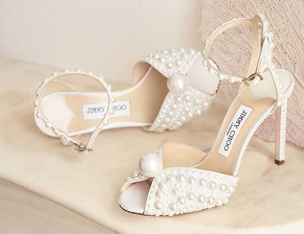 Свадебные туфли с жемчугом – образец элегантности и женственности. Декор может располагаться на пяточной области, носках или каблуке. Эффектно смотрятся как цветочные узоры, выполненные из жемчуга, так и единичные бусины.