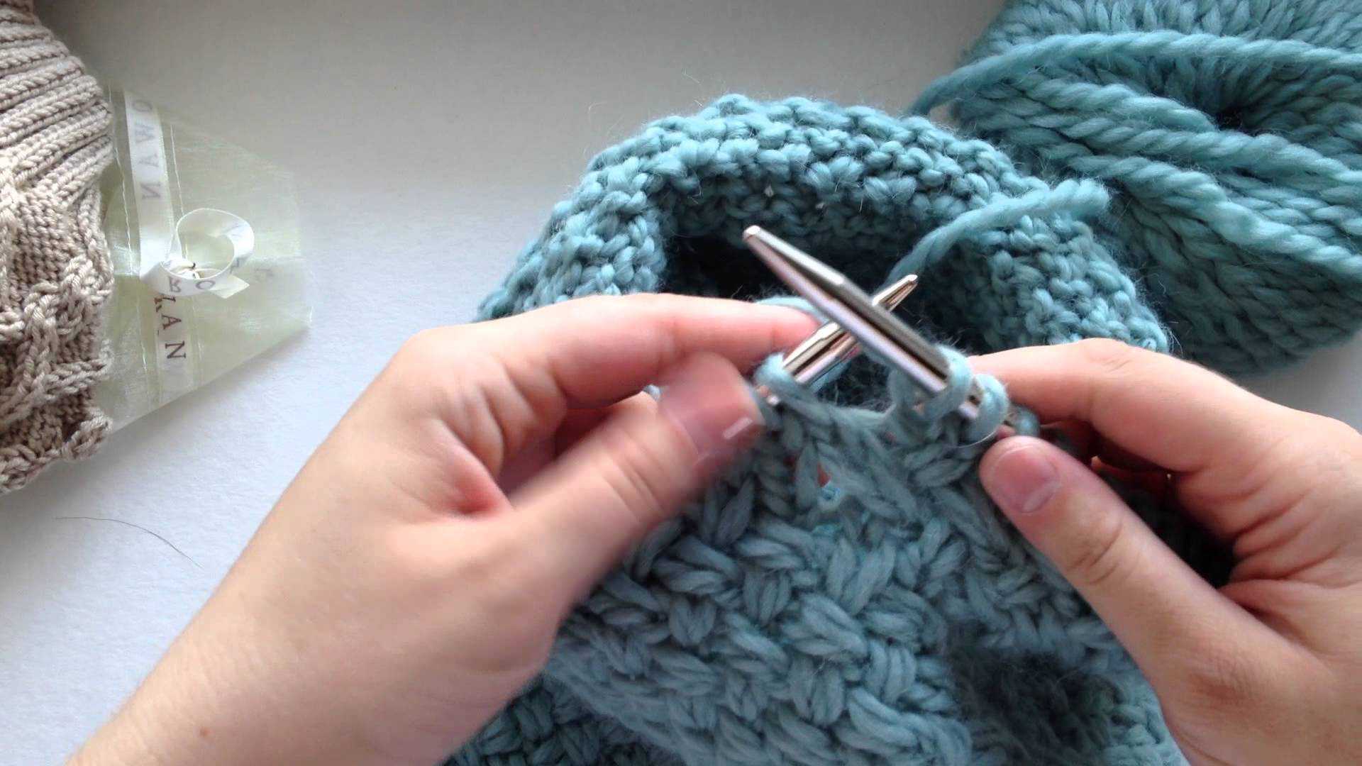 Если вы хотите получить бесхитростное и функциональное изделие, вяжите полотно так называемой резинкой. Соотношение лицевых и изнаночных петель – 1/1 или 2/2. В итоге у вас получится двусторонняя заготовка, которую можно носить, не пугаясь того, что вы случайно надели ее наизнанку.