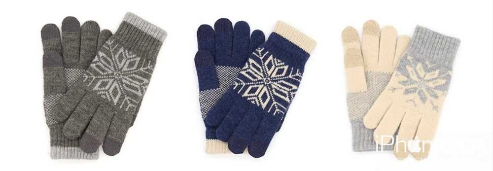 Еще одни перчатки для сенсорных экранов от популярного производителя гаджетов. Перчатки изготовлены из 50% акриловых волокон и 50% овечьей шерсти. Они сделаны в зимнем стиле и доступны в трех цветовых решениях. Тактильный материал есть на указательном, среднем большом пальцах, судя по отзывам, свои функции по контакту с телефоном выполняют на отлично. Цена 800 рублей.
