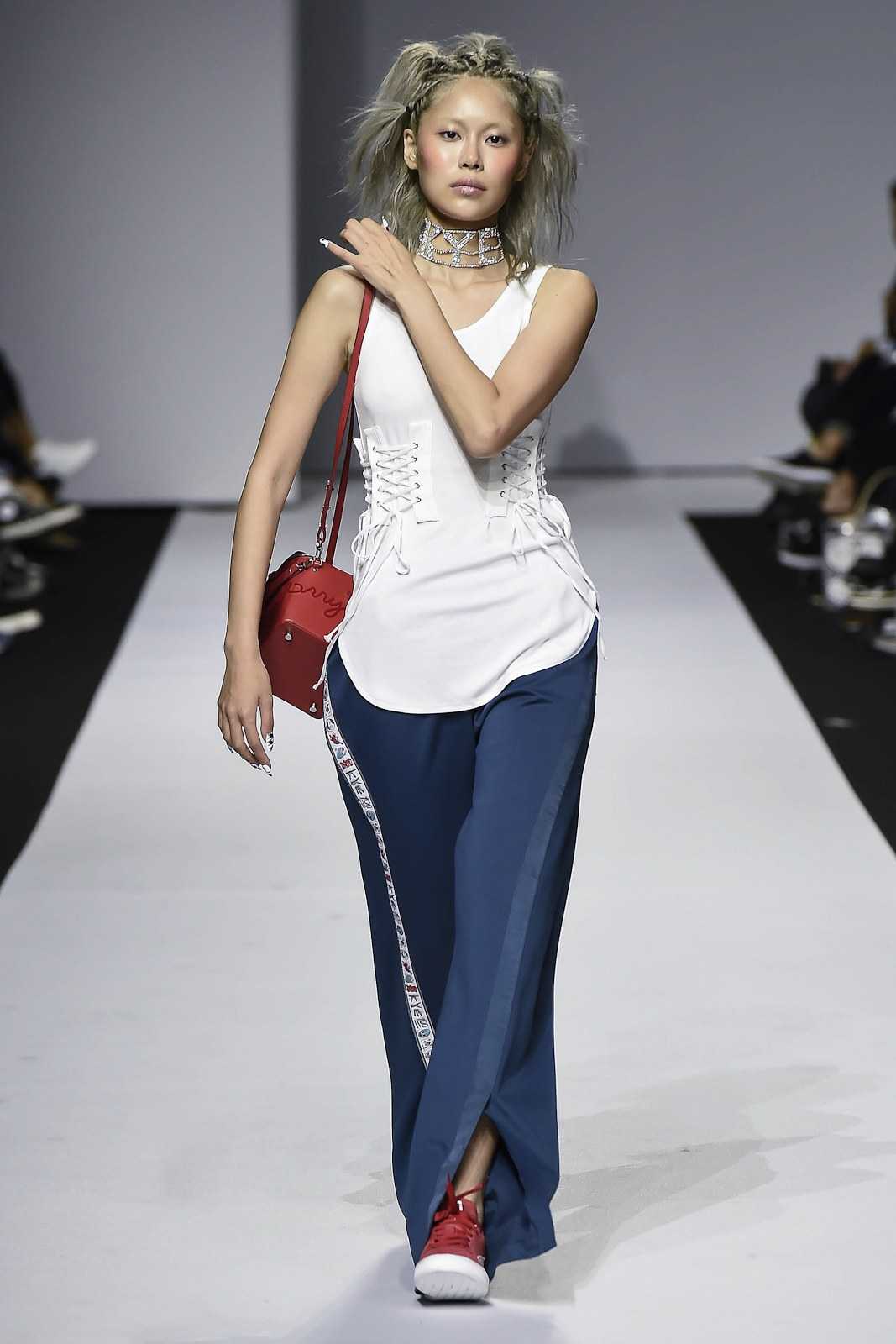 На этом фото корсетная тематика отразилась и на брюках. Неожиданно, но все также изысканно и неординарно. Подобный лук – воплощение индивидуальности, отменного вкуса и безупречного чувства стиля.