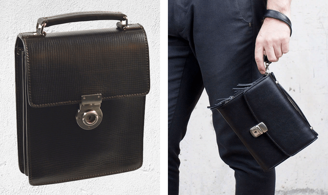 Первая задача, требующая решения, это модель сумки. Аксессуар практичен для мужчин, а также добавляет в мужской лук шарм, стиль. По форме предпочтительны строгие, лаконичные фасоны — квадрат, прямоугольник, полукруг.
