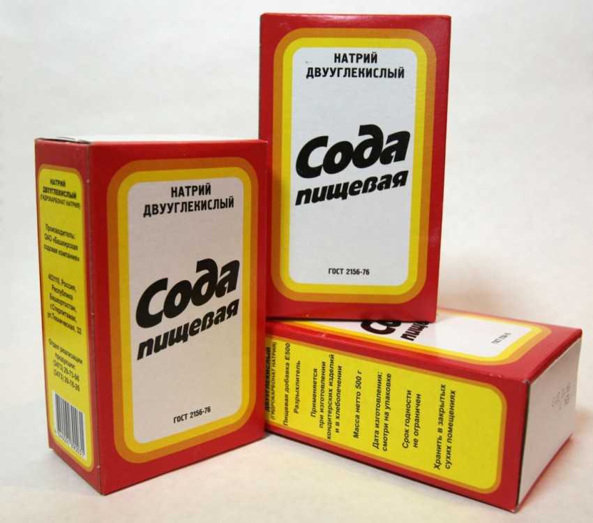 - Заливается литр воды, засыпается сода. Достаточно трёх столовых ложек;