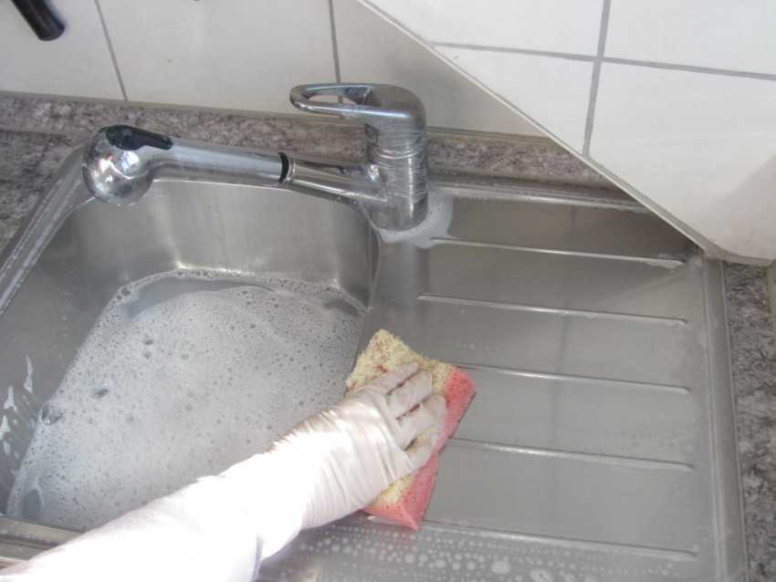 - Растворённые отложения снимаются губкой, после чего выполняется тщательная промывка.