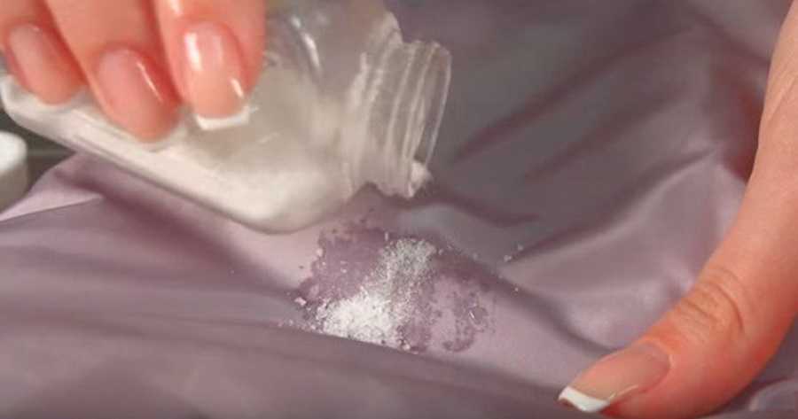 В случае сильного загрязнения поверх спирта ткань посыпаем толстым слоем соли и оставляем, пока она не высохнет.