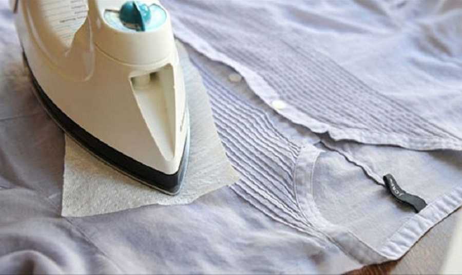 - Поверх нужно расстелить хлопчатобумажную тряпку и прогладить загрязненную область.