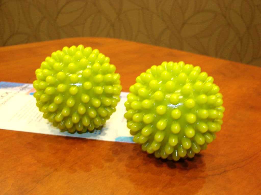 Шарики для стирки. Принцип их действия состоит в том, что при активном вращении барабана шарики бьются об стены и отлетают от них к пуховику, взбивая тем самым его внутренности. Они помогают синтепону не сбиться в комки, а также делают стирку более эффективной, минимизируют риск оставления разводов.