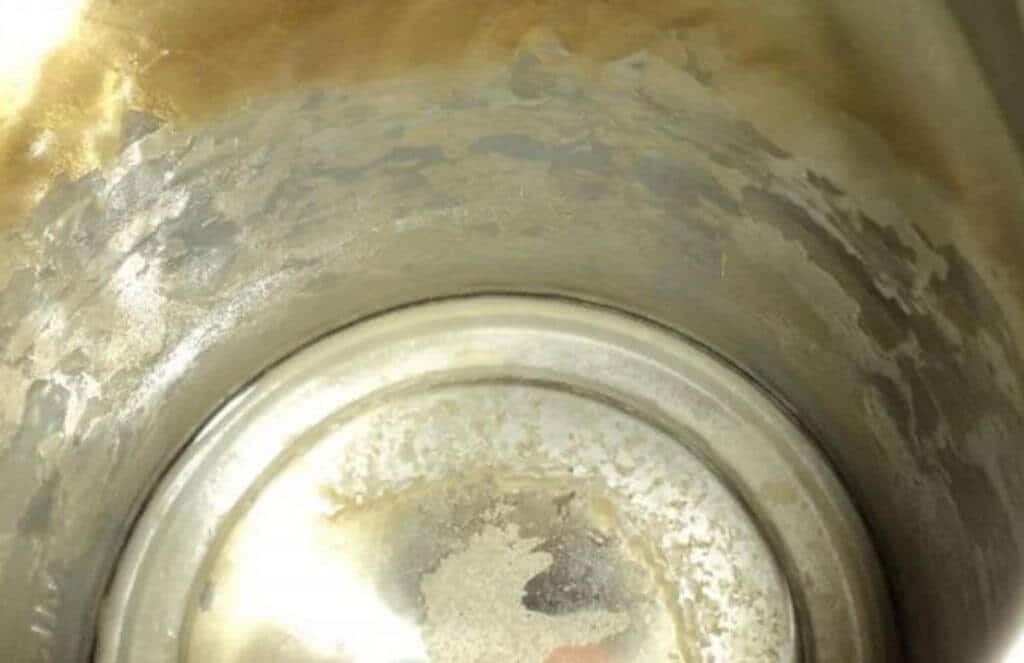 Жесткая вода и недостаточный уход приводят к возникновению внутри термоса известкового налета. Он может содержать отложения хлора, тяжелых металлов, бактерий, поэтому лучше его очищать.