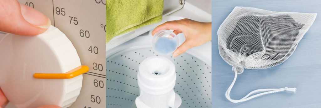 - использовать стиральный порошок, из-за которого возникают разводы (рекомендуется гель, который хорошо выводится во время стирки);