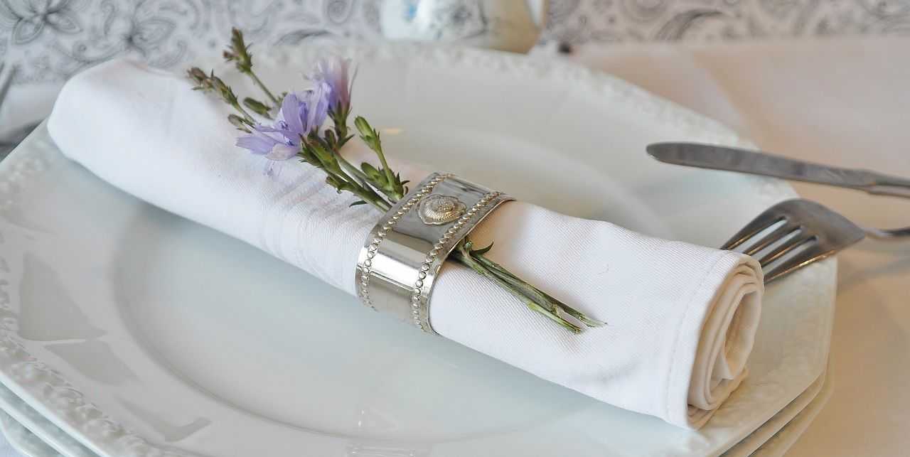 Еще одной важной деталью сервировки являются салфетки, бывают они бумажными и полотняными. Первые кладут в салфетницу, ставят не на таком расстоянии, чтобы было легко дотянуться рукой