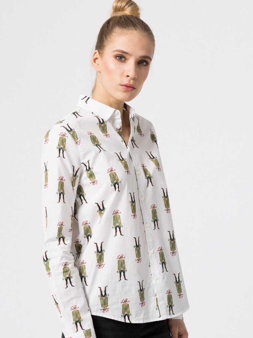 Яркие принтованные модели подойдут как для нестандартного гардероба для вечеринки, так и для повседневного образа. Райские мотивы рубашек отдают предпочтение птицам и цветам.