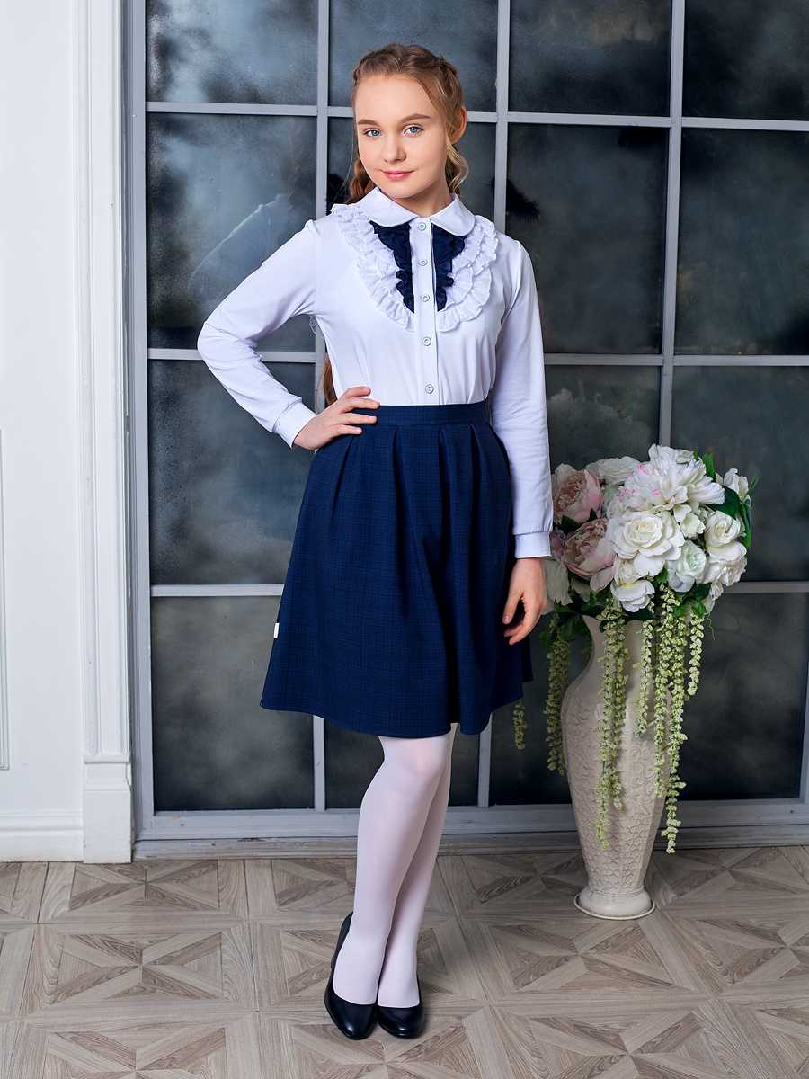 Блузки белого цвета — неотъемлемая часть школьного гардероба каждой девочки. Такие элементы декора, как кружево, воланы и рюши, позволяют уйти от привычных стандартов и придают шарм любой модели блузки. Несомненный тренд сезона — блузка с бантом. Разной формы и размера, бант делает образ школьницы очень элегантным.