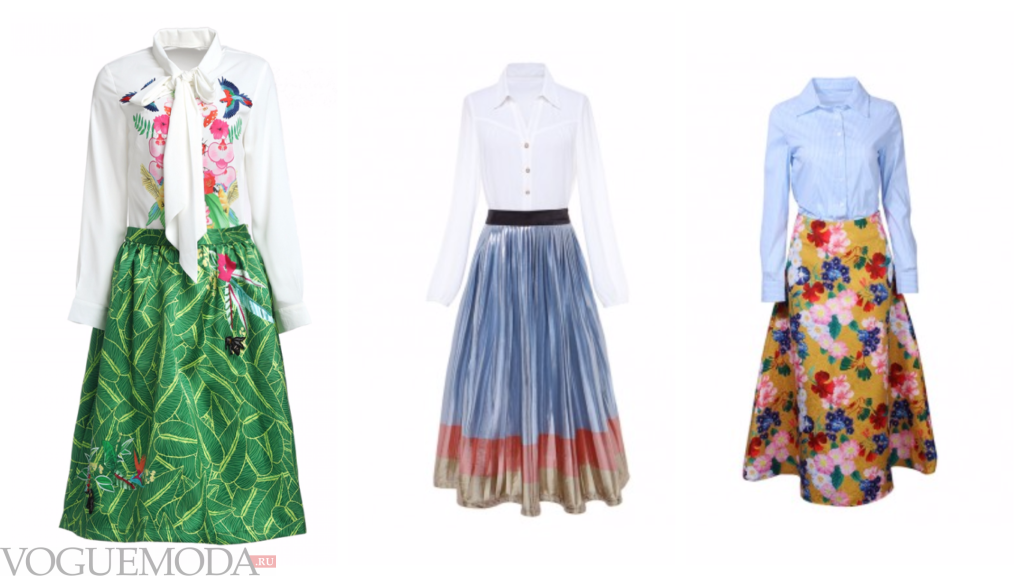 - юбки фасона тюльпан, колокольчик, с запахом, с кокеткой;