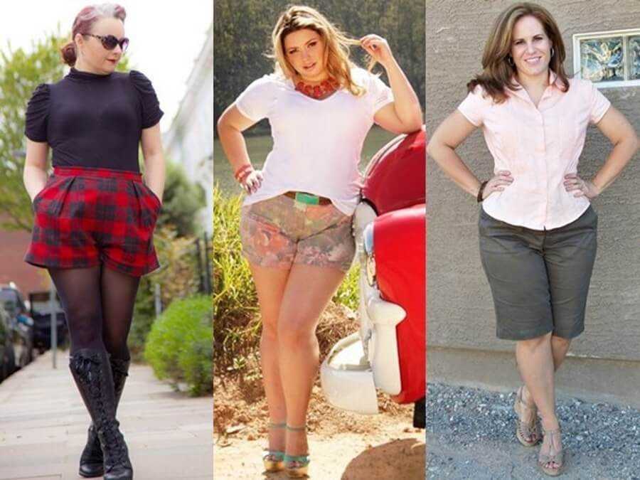 Идеальным вариантом для пышек станут шортики с завышенной талией. Они визуально удлиняют ноги, делают силуэт похожим на песочные часы, подчеркивают красивый соблазнительный бюст и женственные бедра. Девушки plus size могут выбрать любой вариант с завышенной талией. Единственное табу — слишком короткие женские шорты, слегка прикрывающие ягодицы. От такой одежды лучше отказаться. Особенно если речь идет о моделях из денима или льна.