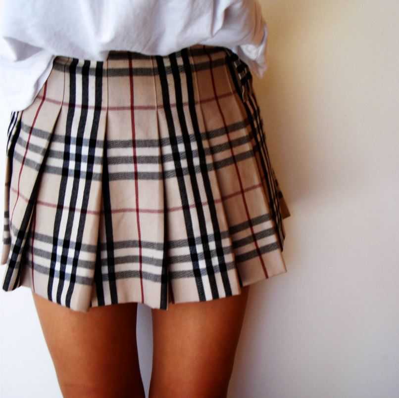 Мини-юбка в клетку часто ассоциируется со школьной формой. Её надевают школьницы и студентки во многих странах, например, в Англии и Японии, сочетая её с жилетом или пиджаком.