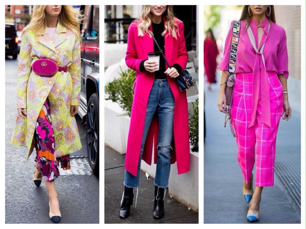 Не обязательно подражать светофору и в одном ансамбле использовать все цвета, сочетающиеся с фуксией. Калор блок, конечно, в тренде, но в погоне за модой не перегни палку.