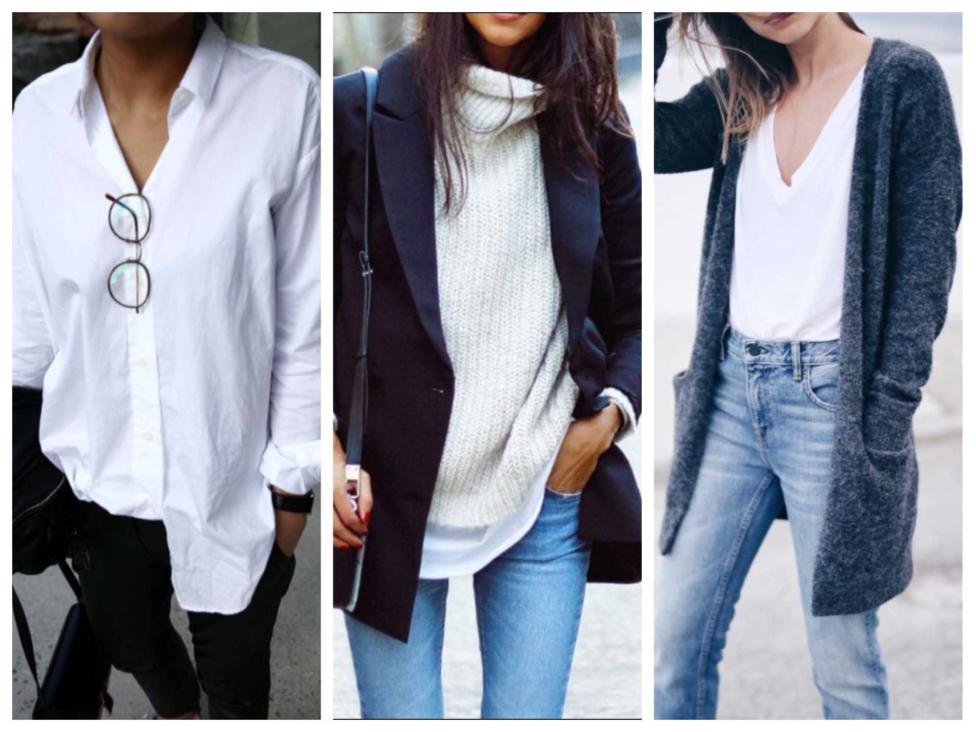 Блузы и топы могут быть любых фактур, но будьте аккуратны с вышивкой и кружевом на них — всего должно быть в меру. Атласные или хлопковые блузы с пышным рукавом, кашемировые или шерстяные джемпера и кардиганы — такая база возможна в любых классических красках. Не рекомендуется внедрять неон, пусть позже он снова вернется в число трендов, но универсальным и классическим цветом его назвать нельзя.