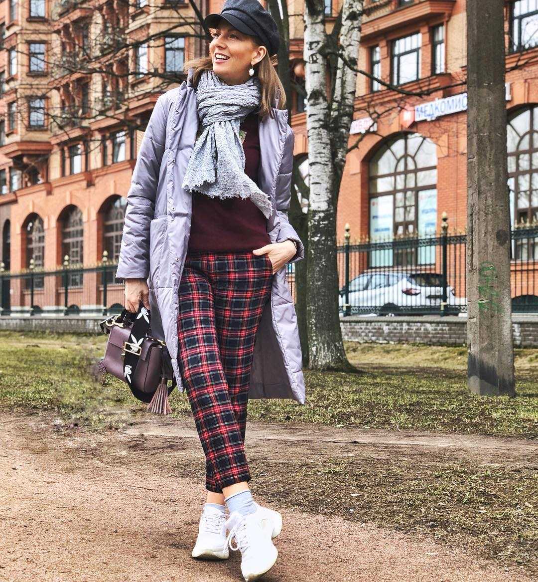 Фиолетовые и сиреневые цвета в одежде в сочетании с классическими коричневыми и бежевыми тонами — это актуальные модные тенденции для осени 2022 года. Такой образ поможет создать нежное осеннее настроение.