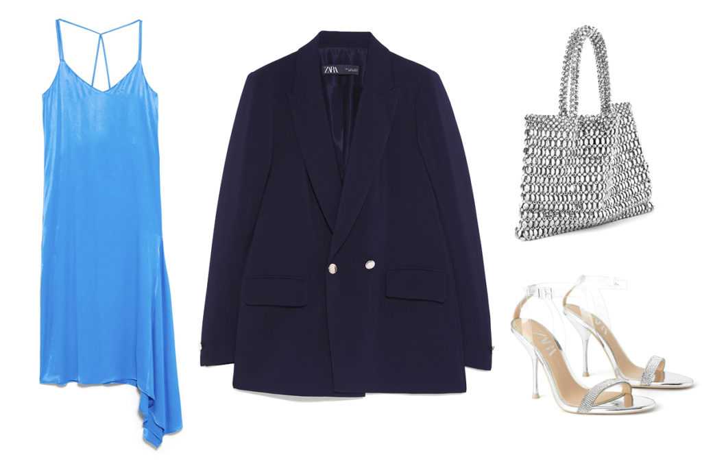 Единственная вещь, которая будет идеально сочетаться с подобным платьем, снижая градус сексуальности и откровенности – пиджак «с мужского плеча». Подобный образ, построенный на игре контрастов, идеально подойдет для богемного мероприятия. А безупречным его завершением станут виниловые босоножки на шпильке, украшенные россыпью страз и серебристая металлизированная мини-сумочка.