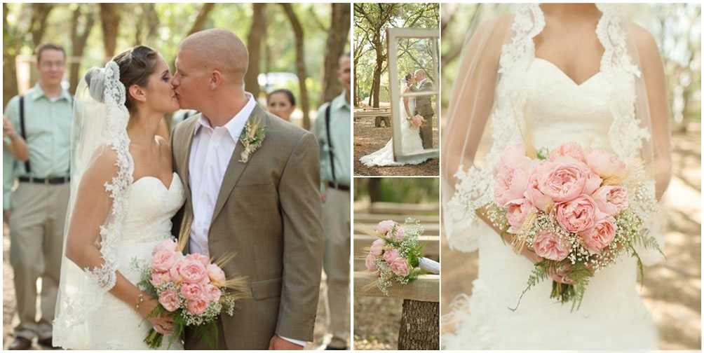 Конечно, одним из важнейших символов и атрибутов невесты является свадебный букет. В шебби шик чаще всего используются цветы с пышным бутоном: пионы и розы. Лепестки должны иметь округлые линии, без острых углов. Избегайте также банальных роз цилиндрической формы. Букет невесты всегда теплых тонов и оттенков В противовес крупным цветам очень воздушно и изящно выглядят букеты из мелких соцветий: ландыш, сирень, гортензия, гипсофила. Очень душевны букеты из ромашек, а белые или розовые тюльпаны – утончённы и лаконичны. В цветочную композицию уместно добавить жемчуг, кружево и ленты.