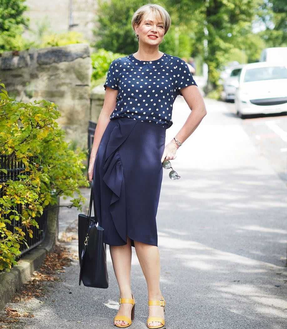 В женском гардеробе базовую роль занимает блузы, футболки, кофточки. Они универсальны так как их легко сочетать с любым низом. А как выгодно это сделать чтобы был образ лёгким и лаконичным рассмотрим далее. Прежде всего поговорим о фасонах блуз, футболок и т.п. Они должны быть свободного кроя, или прямого чтобы не выделялись недостатки фигуры. В актуальных моделях закрытое декольте, рукав 3/4. Избегайте прозрачных изделий и вставок это ни к чему в вашем возрасте. Отдайте предпочтение лаконичным однотонным моделям, и не пестрым принтом. Яркий узор, и декор сделает образ нелепым для вашего возраста.