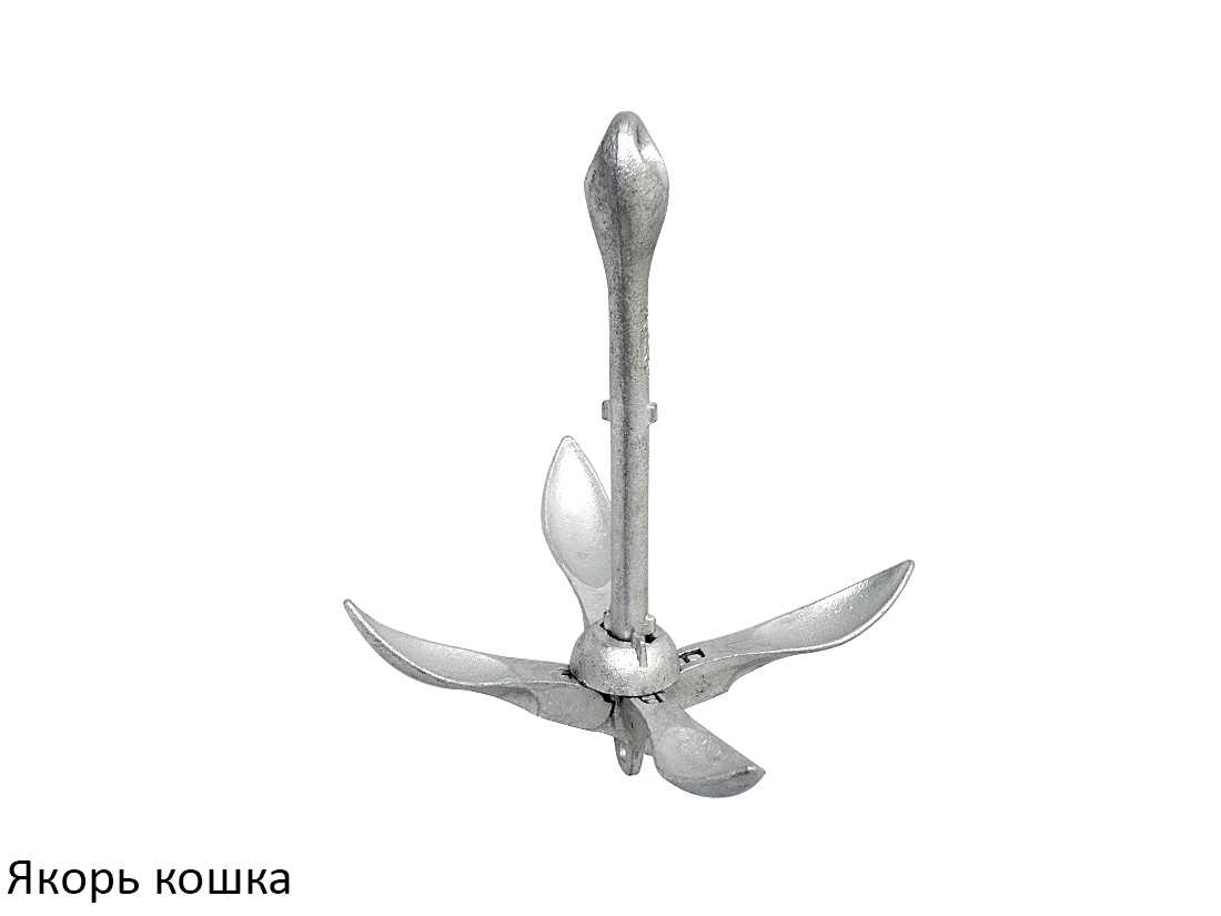 Одна из самых распространенных разновидностей для небольших судов. Устройство можно дополнительно оснастить добавочным весом, что делает его универсальным и позволяет корректировать массу в зависимости от загруженности судна. Вес конструкции находится в пределах от двух до четырнадцати килограммов – чаще всего рыбаки предпочитают более легкие варианты. «Кошка» также может применяться для траления – поиска снастей, утопленных предметов и других вещей.