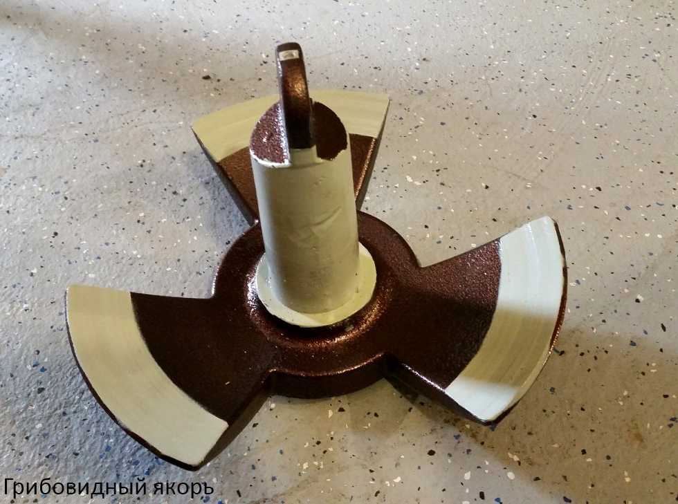 Если дно водоема каменистое или, напротив, илистое, то прекрасным вариантом будет грибовидный якорь. Он прекрасно цепляется почти за каждую поверхность и имеет ряд плюсов, превосходя многие другие виды якорей.
