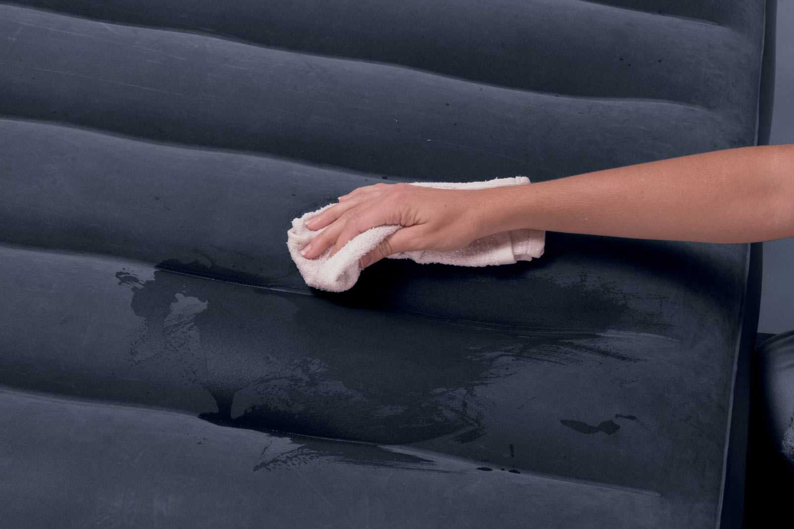 - После протирки обезжиривающим средством на поверхности надувного матраса Intex не должны сохраниться следы.