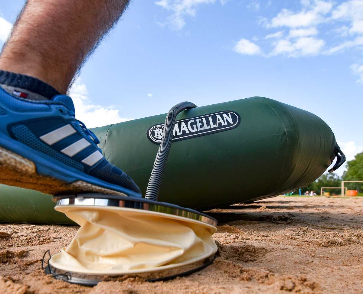 Теперь можно перейти непосредственно к процессу накачивания. Самым популярным инструментом для решения этой задачи является ножной насос. Залогом успеха будет правильный выбор данного устройства по литражу и конструкции. Оптимальная вместимость составляет 1,5-5 л, при этом будет нелишним предусмотреть наличие переходников для разных клапанов. К конструкции основные требования предъявляются в отношении материала изготовления – пластик удобнее в походных условиях, а нержавейка станет наилучшим выбором при домашней эксплуатации. В процессе накачивания особых сложностей нет. Главное – организовать надежную поверхность для насоса и корректно выполнить подключение. Сколько качать ПВХ-лодку? Это зависит от темпа работы, но в любом случае ориентироваться нужно на показатель манометра. Если же прибора для измерения давления нет, то контролировать пиковую точку надува придется «на глаз». Визуально оптимальное состояние надува баллона можно определить путем прогиба его поверхности. При надавливании пальцем ткань должна прогибаться не более чем на 1,5 см. Также можно проверить давление по звуку – легкий шлепок ладонью по тому же баллону должен сопровождаться характерным звонким откликом.