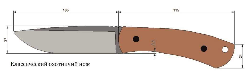 Классический охотничий нож имеет следующие приметы: