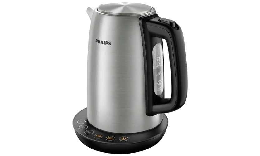 Здесь нет технологических «наворотов», как в REDMOND SkyKettle M171S. Это хороший чайник, который справится со своей задачей. Собран качественно, не протекает. Мощности хватает для быстрого кипячения. Возможность выбора температуры позволит разогреть воду до нужной и дальше её поддерживать. Функционал сопоставим с REDMOND, только тот управлялся со смартфона, а Philips — функциональной подставкой. За такую цену хотелось бы видеть термометр, но его сюда «не завезли». Крышка резко открывается, поэтому иногда капельки горячей воды могут разбрызгиваться. Но такие минусы не существенны.