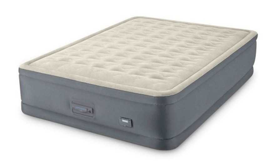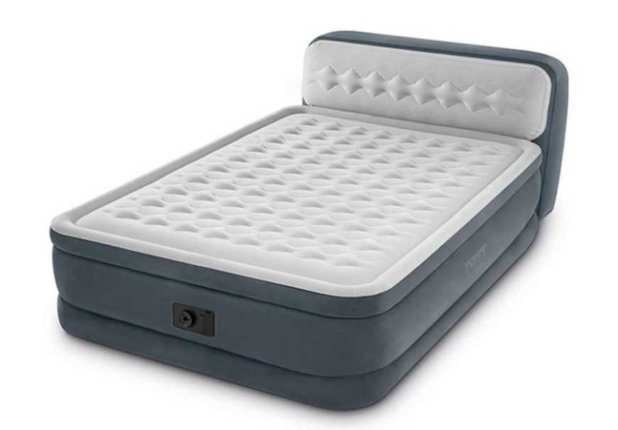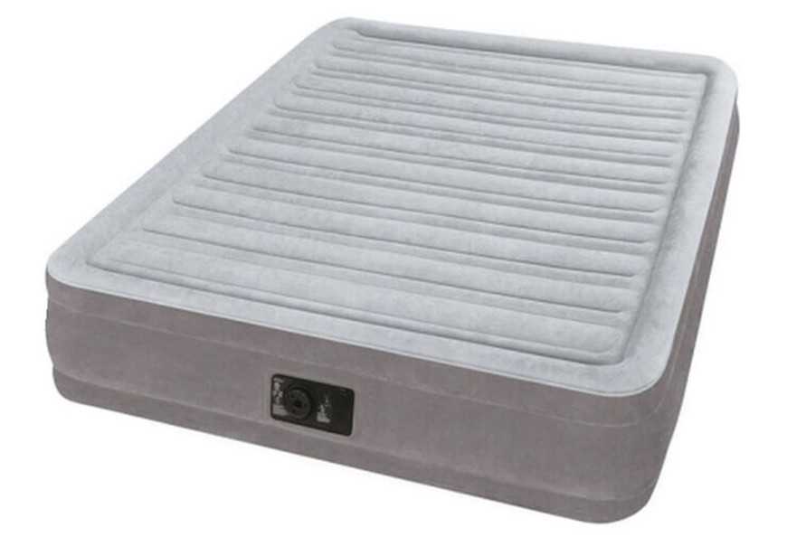 1. Полутораспальная надувная кровать intex Supreme Air-Flow Bed с комфортом разместит одного человека, но подойдет и для двоих. Упругость модели регулируется встроенным насосом, позволяющим наполнить кровать воздухом до желаемой упругости за 2,5 минуты. Изделие выдерживает вес до 273 кг и имеет высоту 51 см, при том, что вес самого изделия составляет 16,5 кг. Размер изделия составляет 1,52 х 2,03 м, а специфика конструкции предотвратит съезжание постельного белья. Кровать имеет в запасе самоклеящуюся деталь на случай прокола, так же в ее комплект входит сумка для хранения. К минусам кровати можно отнести необходимость в подкачивании при постоянной эксплуатации.