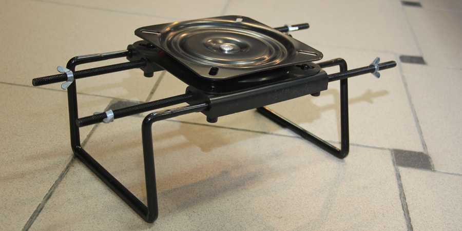 Поворотный механизм делает кресло более манёвренным, что очень важно при ужении спиннингом, когда приманку нужно забрасывать в разные стороны. Этот элемент можно приобрести в отделе мебельной фурнитуры