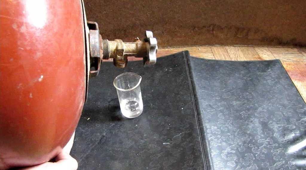Такое возможно услышать зимой. Знайте, это не вода, а бутановая составляющая СПБТ. При малейших заморозках бутан перестает преобразовываться в парообразную фракцию. Именно она и «плещется» в виде жидкости внутри.