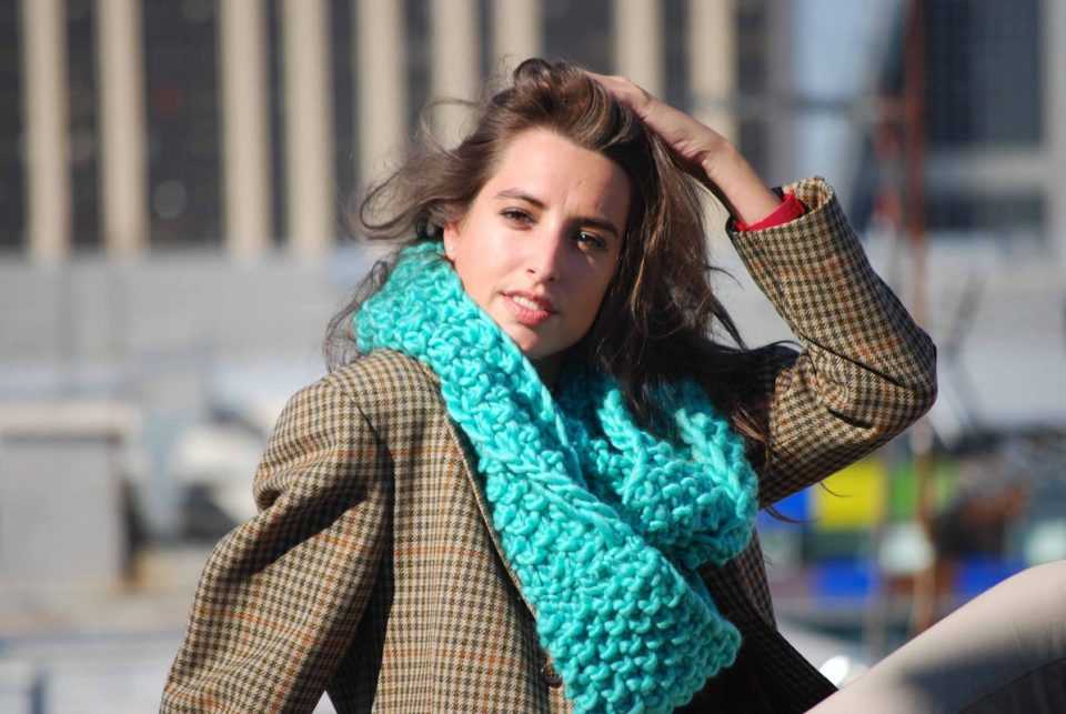 - Популярный и элегантный метод, как красиво завязать теплый шарф — короткий край оставить на груди, а длинный перекинуть через плечо и красиво задрапировать аксессуар.