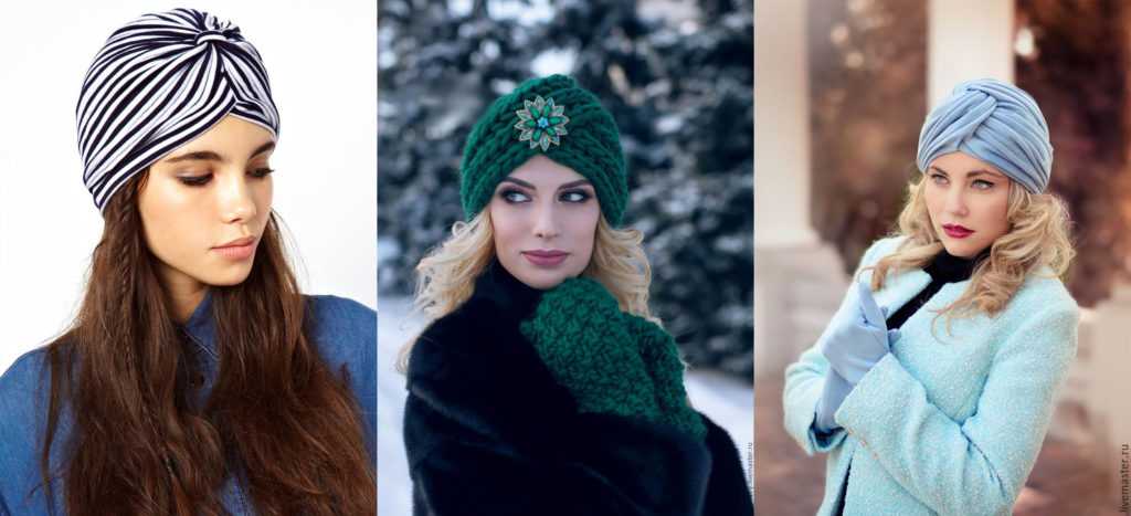 Второе название—«тюрбан».Они могут изготавливаться из разных тканей,как из лёгких тканей(трикотаж,шёлк,хлопок,шифон),так и тёплых материалов(шерсть и мех).Поэтому такую шапку можно подобрать как для тёплой погоды,так и для холодной.Такая шапка подходит практически под любой вид верхней одежды.Если носить её с распущенными волосами,то она придаст женственности.