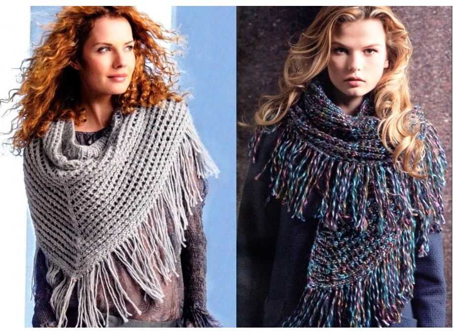 - Тонкий, но широкий трикотажный шарф с бахромой.