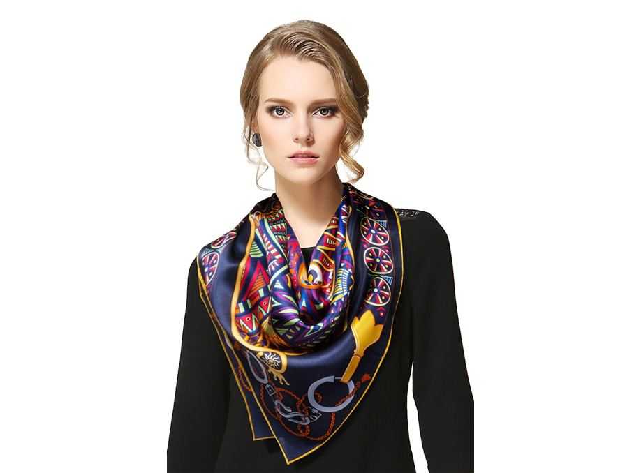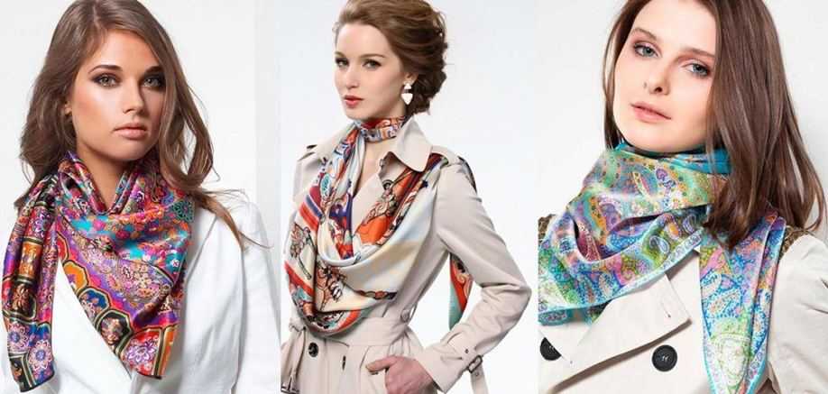 Легкие шейные платки (принтованные или однотонные), изготовленные из натурального шелка, атласа или шифона, хорошо сочетающиеся с одеждой делового стиля.