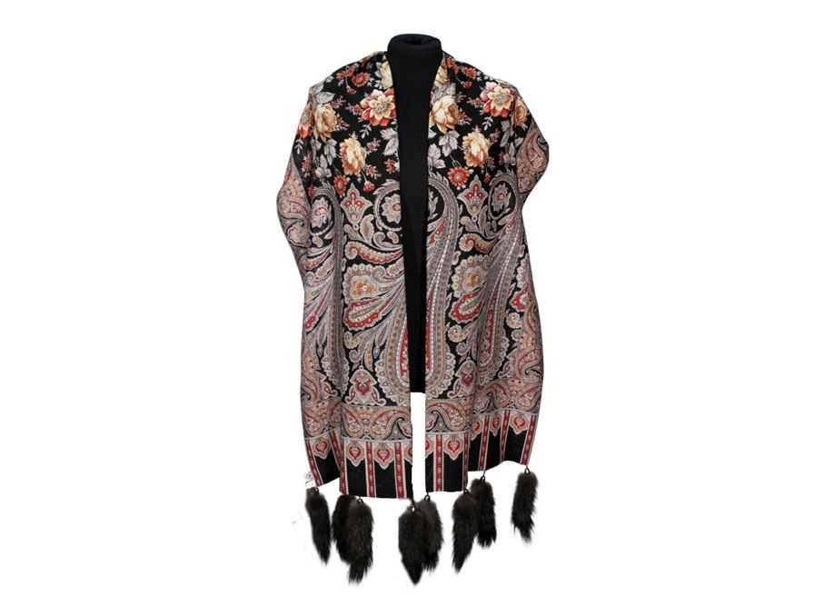Шелковые шарфы, декорированные элементами из натурального меха.