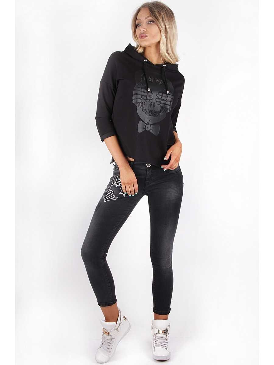 Джинсы черные женские зауженные с кофточкой в Ламода