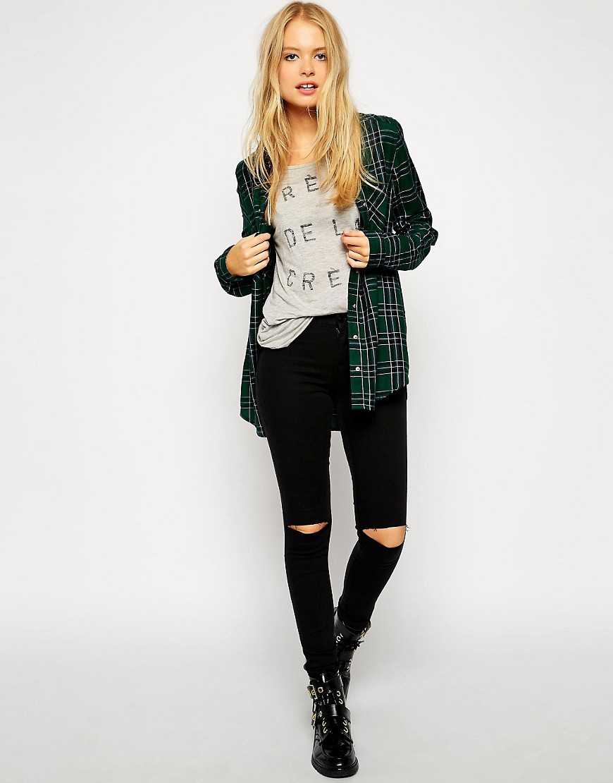 - Невозможно носить в холодное время года, так как прорези на коленях могут значительно навредить суставам. Поэтому подобные образы рекомендуется применять на весну/осень.