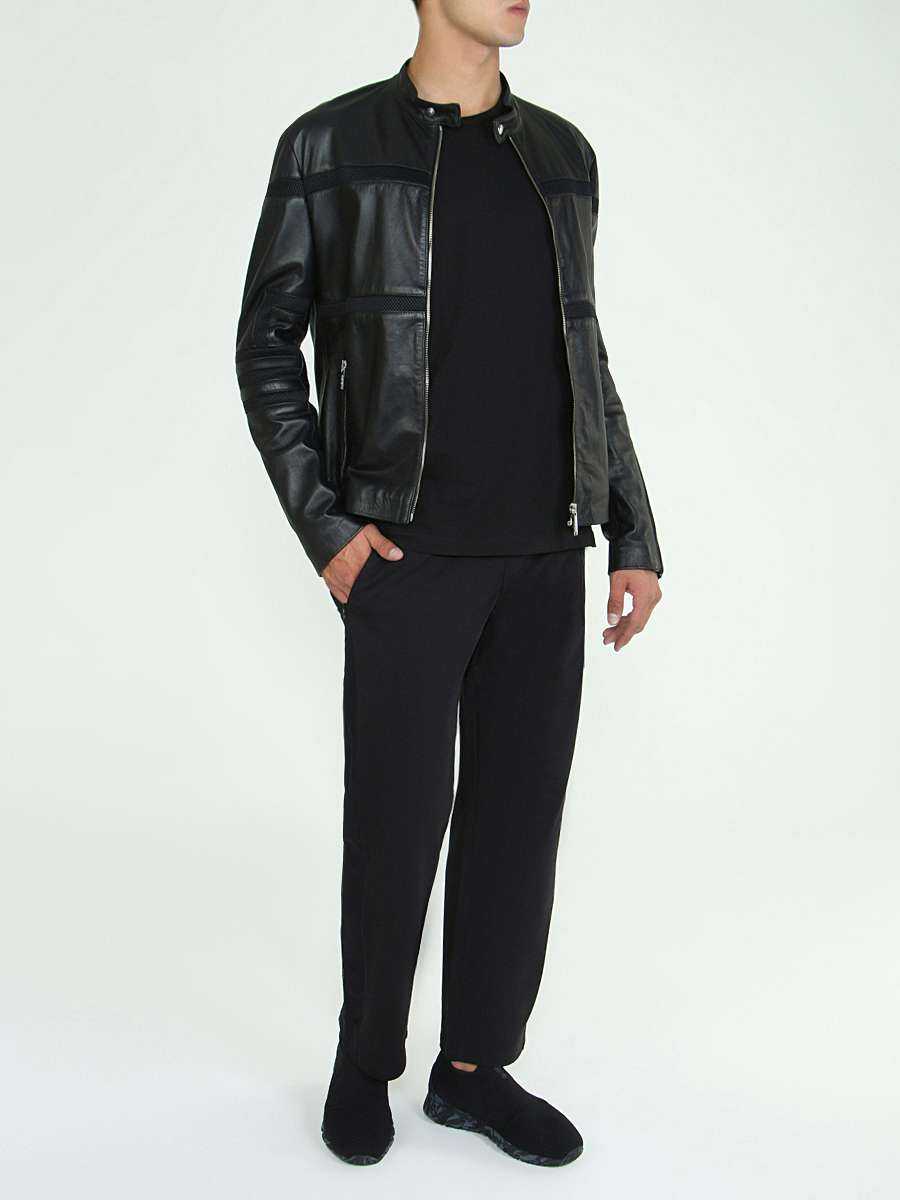На четвертом месте мужская кожаная куртка мотоциклетного типа Bikkembergs BI535EMCEEY8 с тонким слоем утепления синтепоном. Она рассчитана на осенне-весенний сезон. Эта модель прямого кроя с двумя наружными и одним внутренним карманом, воротником-стойкой и декоративными диагональными строчками относится к классу хорошие кожаные куртки из-за своих высоких качественно-эксплуатационных характеристик. На рукавах есть скрытые трикотажные манжеты, снизу уплотнитель отсутствует. Узнать куртку бренда можно по нашивке на верхней части спинки.