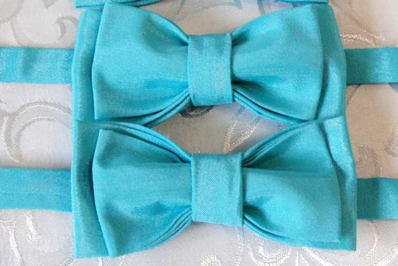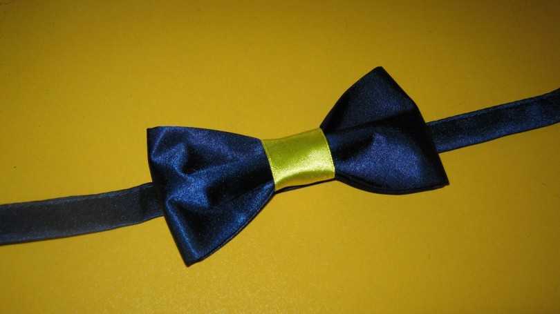 Галстук бабочку можно сшить не только из ткани. Весьма оригинальным решением будет выполнение своими руками галстука из атласной ленты.