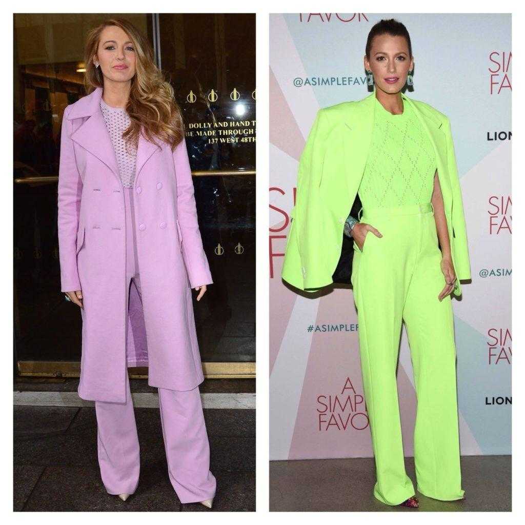 Если подбирается обувь к брюкам не укороченного фасона, нужно помнить, что брючина должна почти полностью закрывать каблук. Образы Блейк Лайвли демонстрируют этот вариант.
