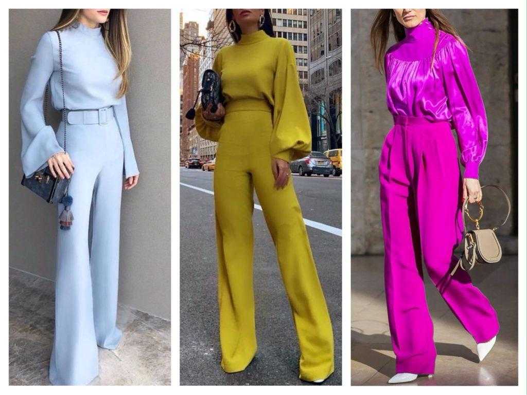 Выбрав штаны с рисунком, оттенок верха должен совпадать с наиболее спокойным цветом в узоре палаццо.