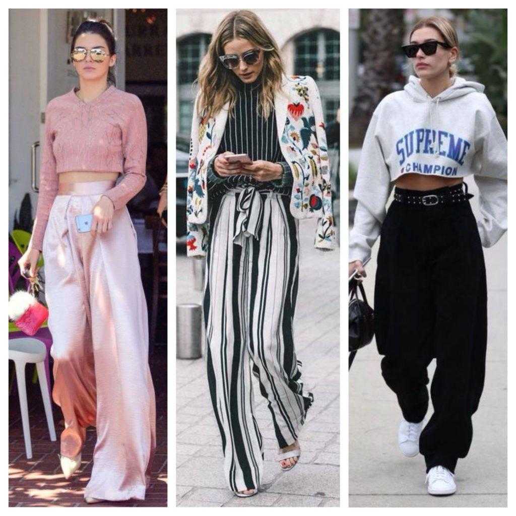 В последнее время дизайнеры радуют модниц новыми моделями с высокой линией талии. Среди них популярны кюлоты и шаровары. Первые комбинируют с блузами, топами, свитерами. Вторые хорошо смотрятся с майками, футболками. Главное, чтобы верх не был широким.